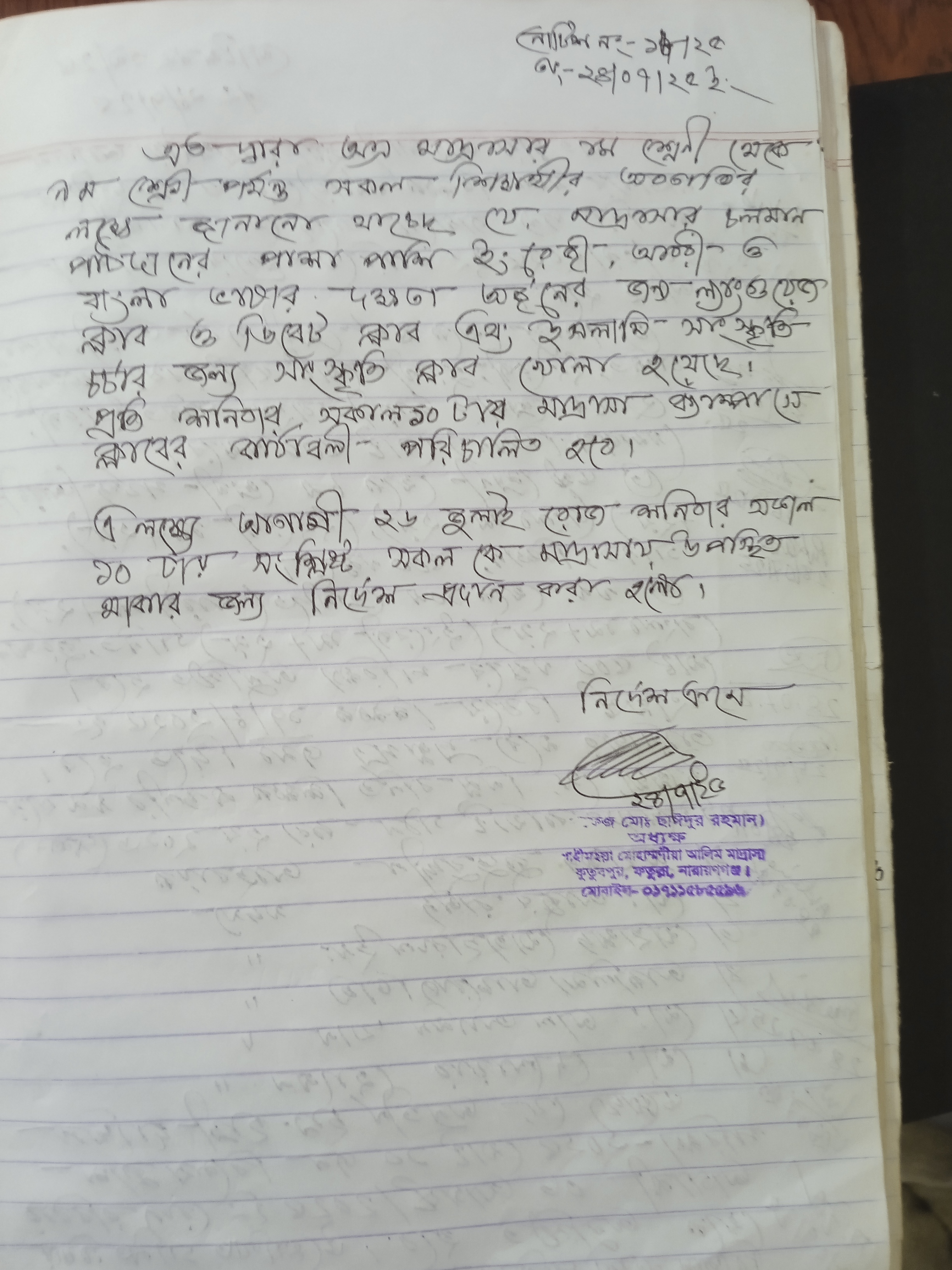 নোটিশ বোর্ড: Our Language club, debate club and Cultural Program will be held on every Saturday. So, interested students are requested to attend the program.